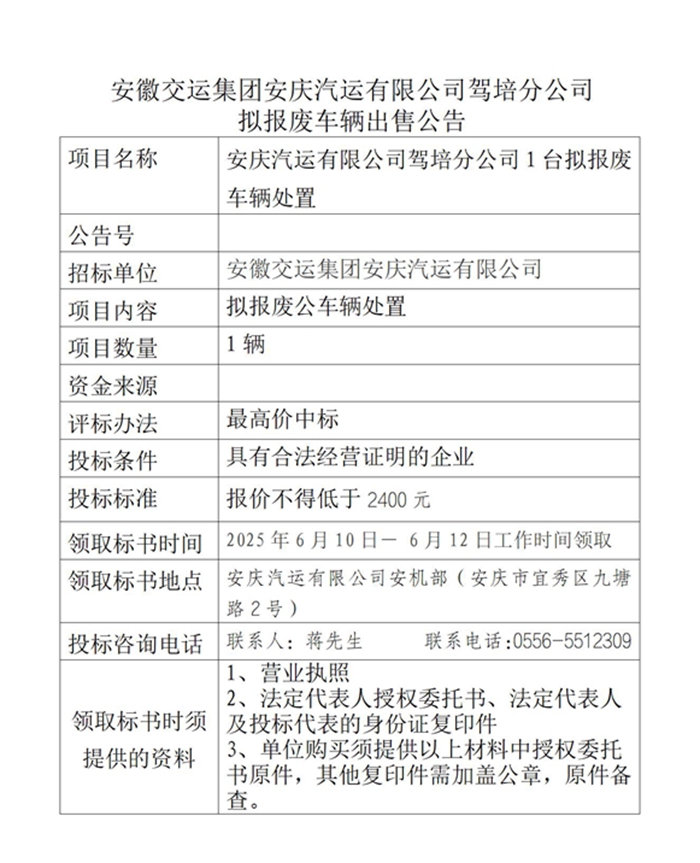 駕培分公司擬報(bào)廢車輛出售公告