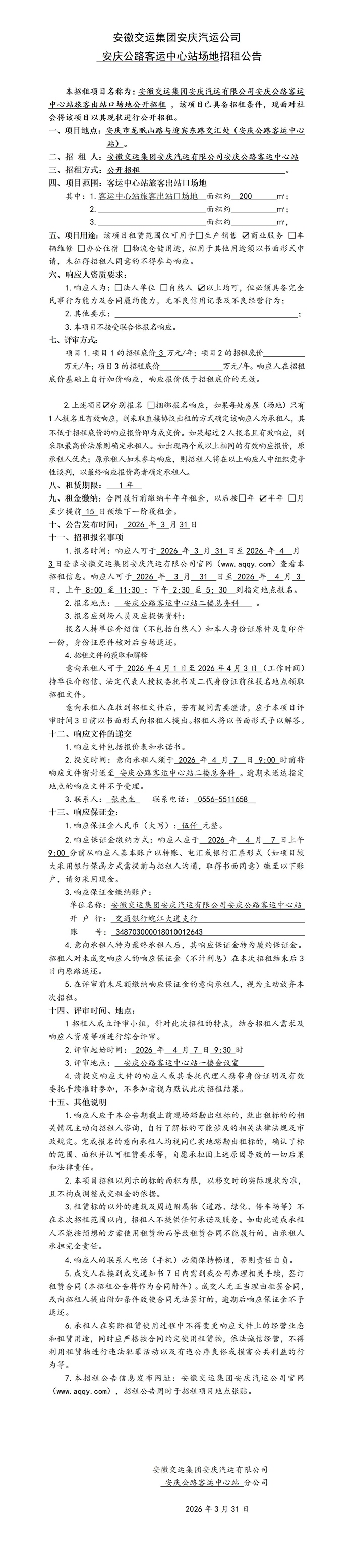 安慶中心站出站口招租公告
